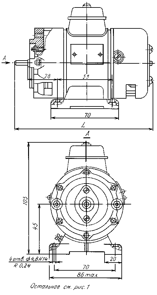 Примечание: электродвигатели УЛ-042 имеются в двух исполнениях крепления: фланцевое и на лапах.